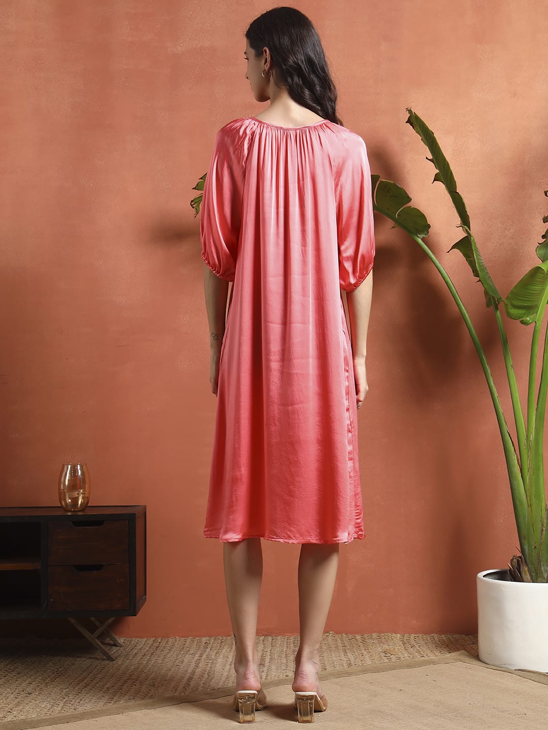 Step into effortless elegance with our Sapphire Breeze Relaxed Fit Dress, a timeless piece designed to bring both comfort and charm to your wardrobe. Made from a luxurious satin blend, this dress features a rich sapphire blue hue that flatters all skin tones. The gathered neckline and soft puff sleeves add volume and grace, while the relaxed silhouette ensures a comfortable and flattering fit for all body types.